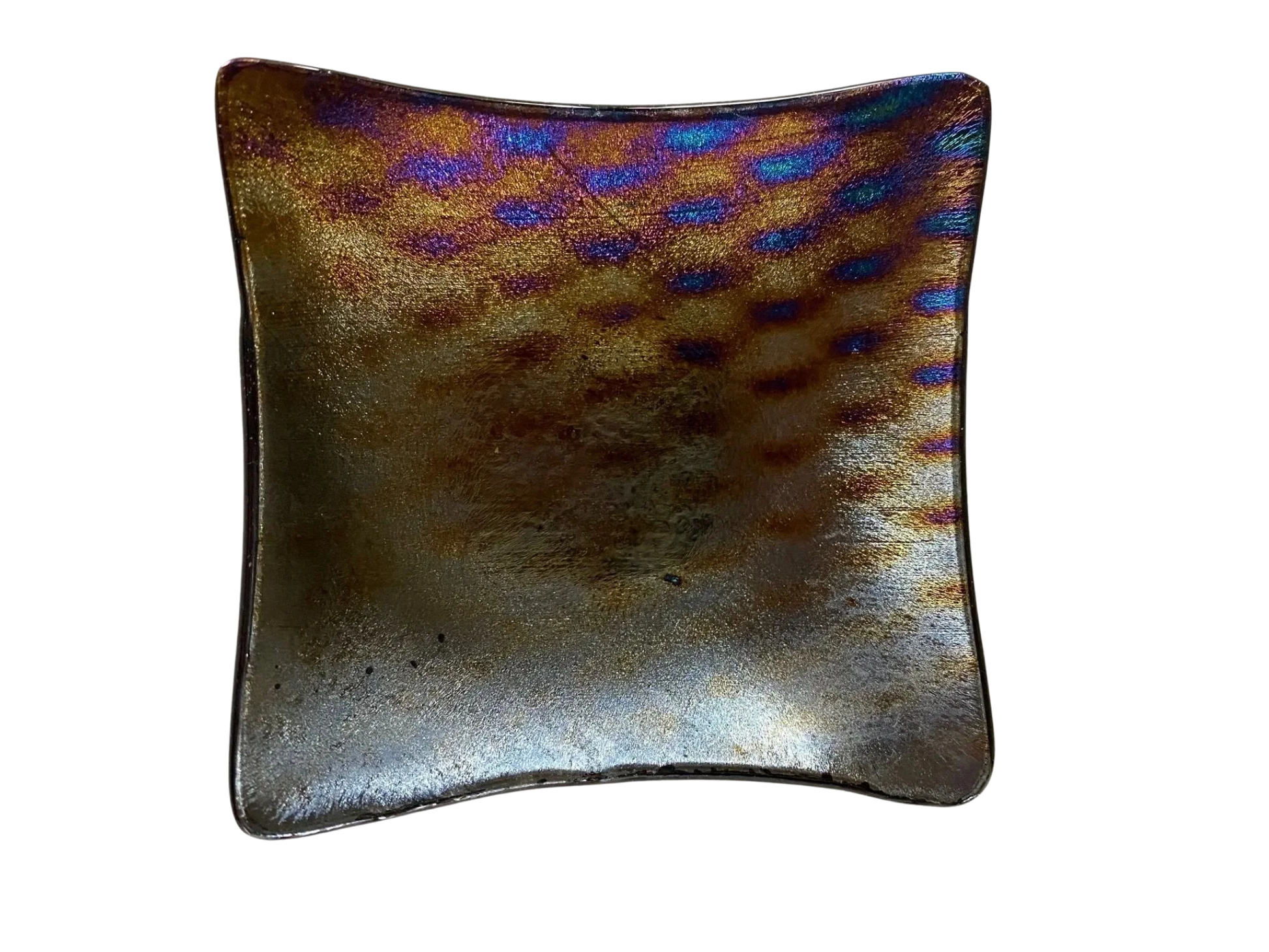 Introducing the Black Mystery Irid Sushi Bowl – a captivating and exquisite artistic masterpiece that will elevate your dining experience to new heights. Inspired by the enigmatic allure iridescent glass, this bowl features mesmerizing color changes, that changes with the lighting or angle of view. Crafted with utmost precision, the Black Mystery Irid Sushi Bowl effortlessly merges functionality with artistry. Its sleek black background enhances the striking contrast of the vibrant pattern, creating a visually stunning centerpiece for any occasion. Whether displayed in your gallery, art studio, or even in your own home, this extraordinary bowl is sure to captivate the attention of all who lay eyes on it. The Black Mystery Irid Sushi Bowl is not just a feast for the eyes – it is also a fully functional piece for culinary enthusiasts. Crafted from high-quality materials, this bowl ensures durability and longevity, making it a long-lasting addition to your gallery or kitchen. Whether you are a passionate sushi connoisseur or an art enthusiast seeking to enrich your gallery collection, the Black Mystery Irid Sushi Bowl is the perfect choice.