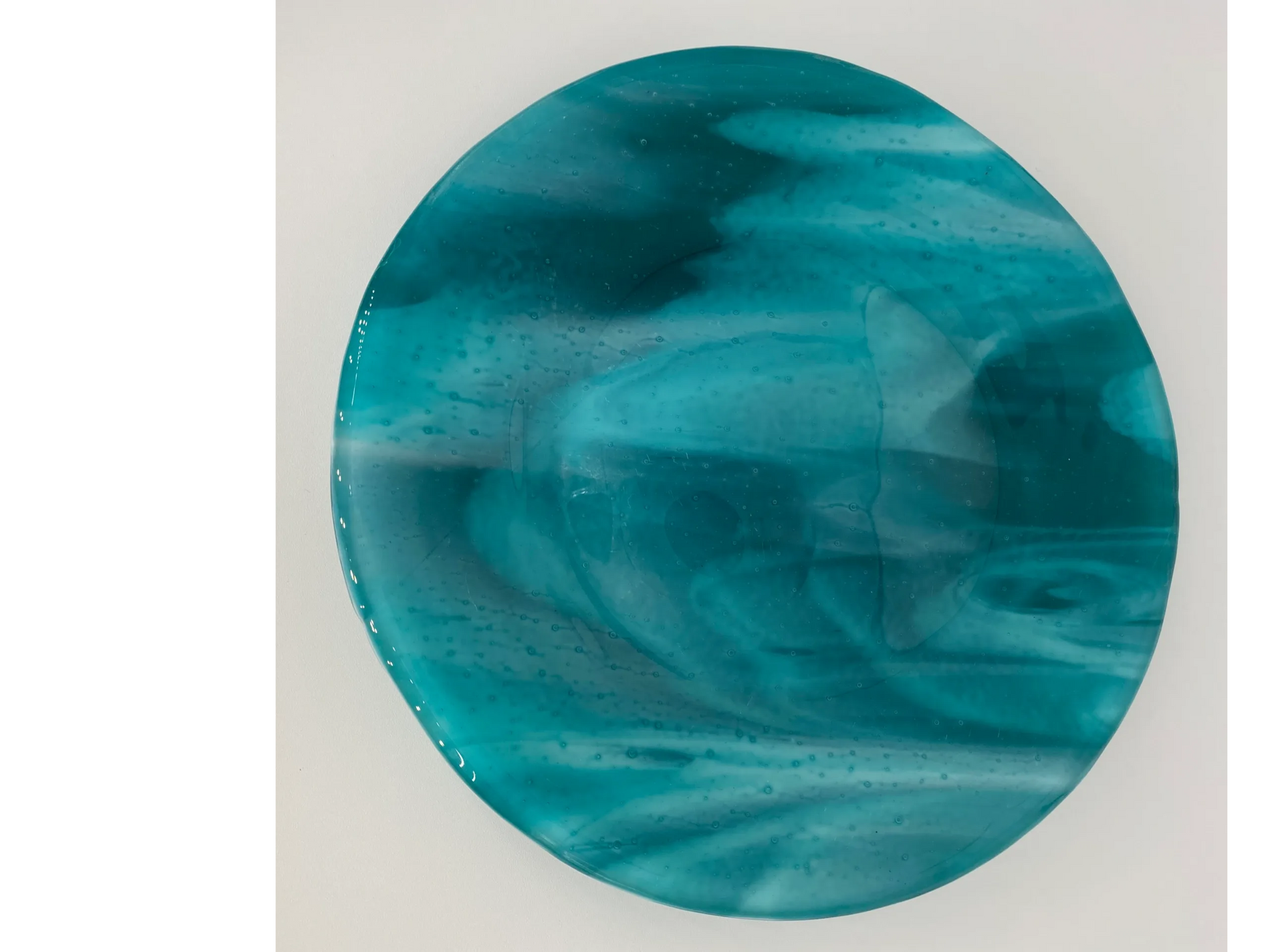 Introducing the Peacock Blue Plate, a mesmerizing masterpiece in our gallery collection. This exquisite plate measures just under 9" in diameter and is swirled with shades of peacock bule, that exudes elegance with a touch of serenity.